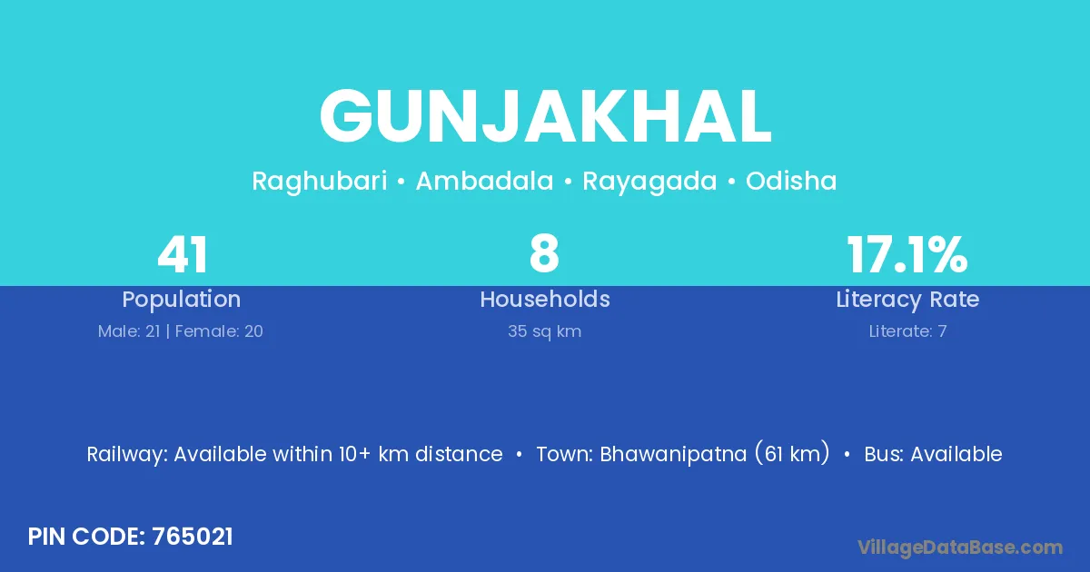 Gunjakhal village is located in the Ambadala Tehsil of the Rayagada district in Odisha .