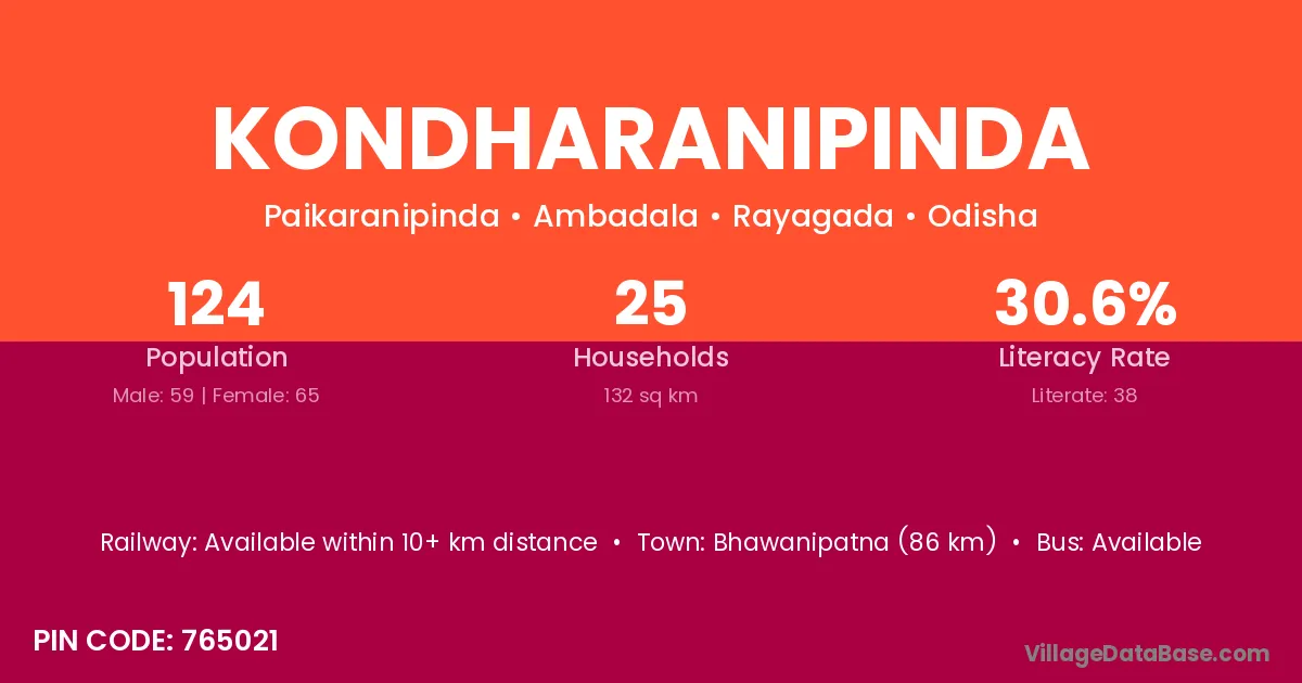Kondharanipinda village is located in the Ambadala Tehsil of the Rayagada district in Odisha .