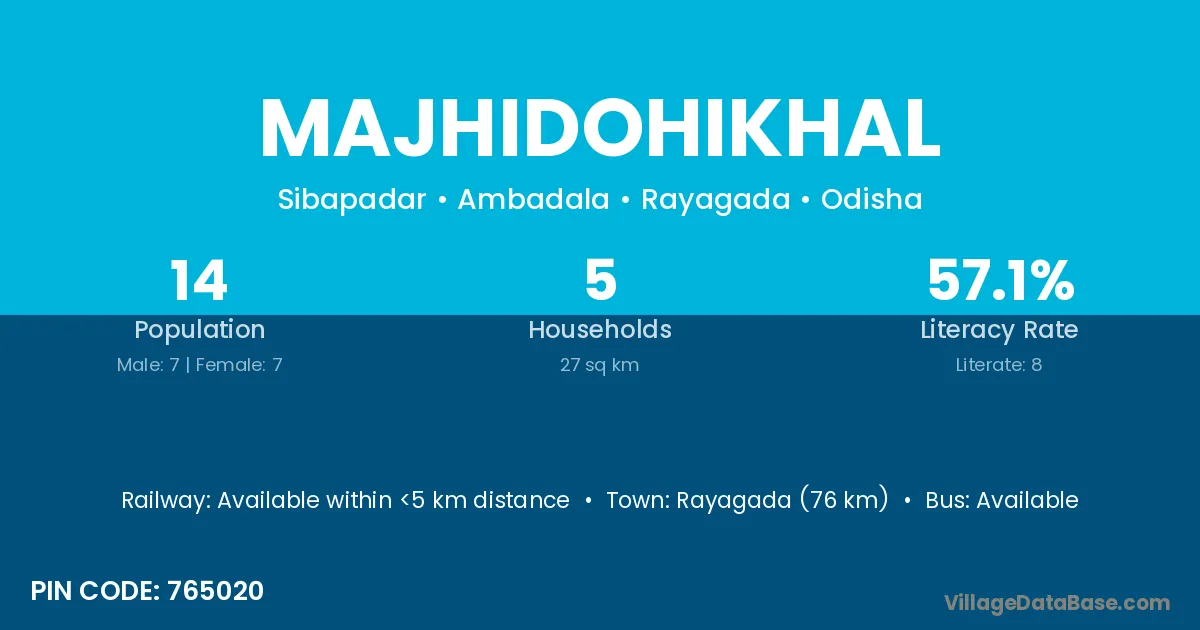 Rayagada (76 km) is the nearest town to Majhidohikhal village for major economic activities and is located approximately 76 km away.