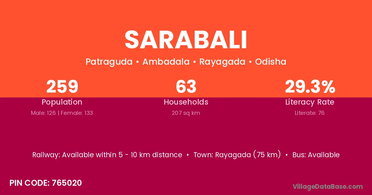 Sarabali village is located in the Ambadala Tehsil of the Rayagada district in Odisha .
