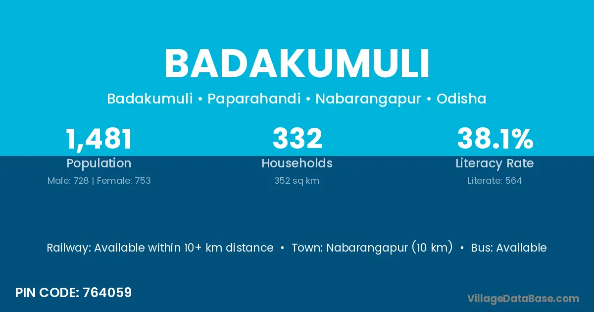 Rayagada (80 km) is the nearest town to Badakumuli village for major economic activities and is located approximately 80 km away.