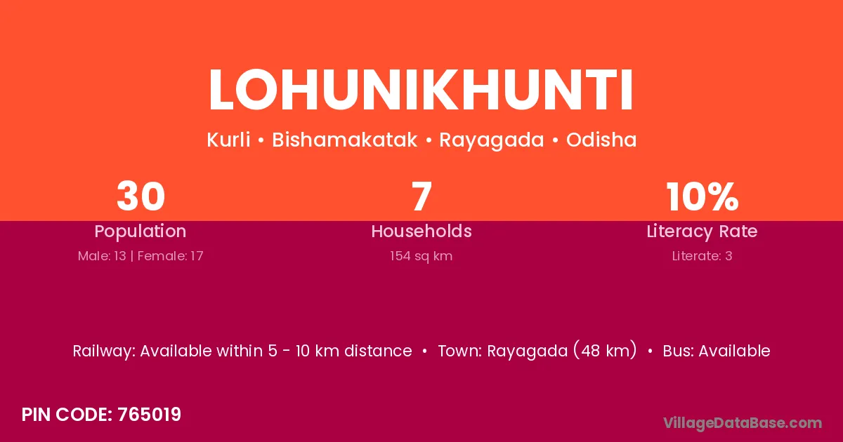 Lohunikhunti village is located in the Bishamakatak Tehsil of the Rayagada district in Odisha .