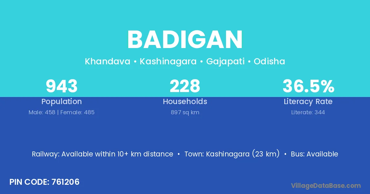 Gudari (9 km) is the nearest town to Badigan village for major economic activities and is located approximately 9 km away.