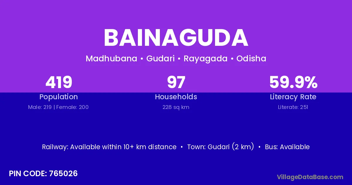 Bainaguda village is located in the Gudari Tehsil of the Rayagada district in Odisha .