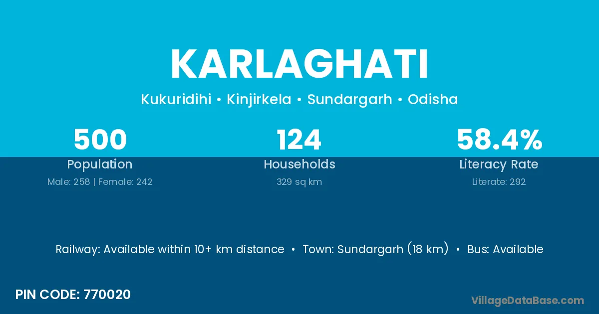 Gudari (23 km) is the nearest town to Karlaghati village for major economic activities and is located approximately 23 km away.