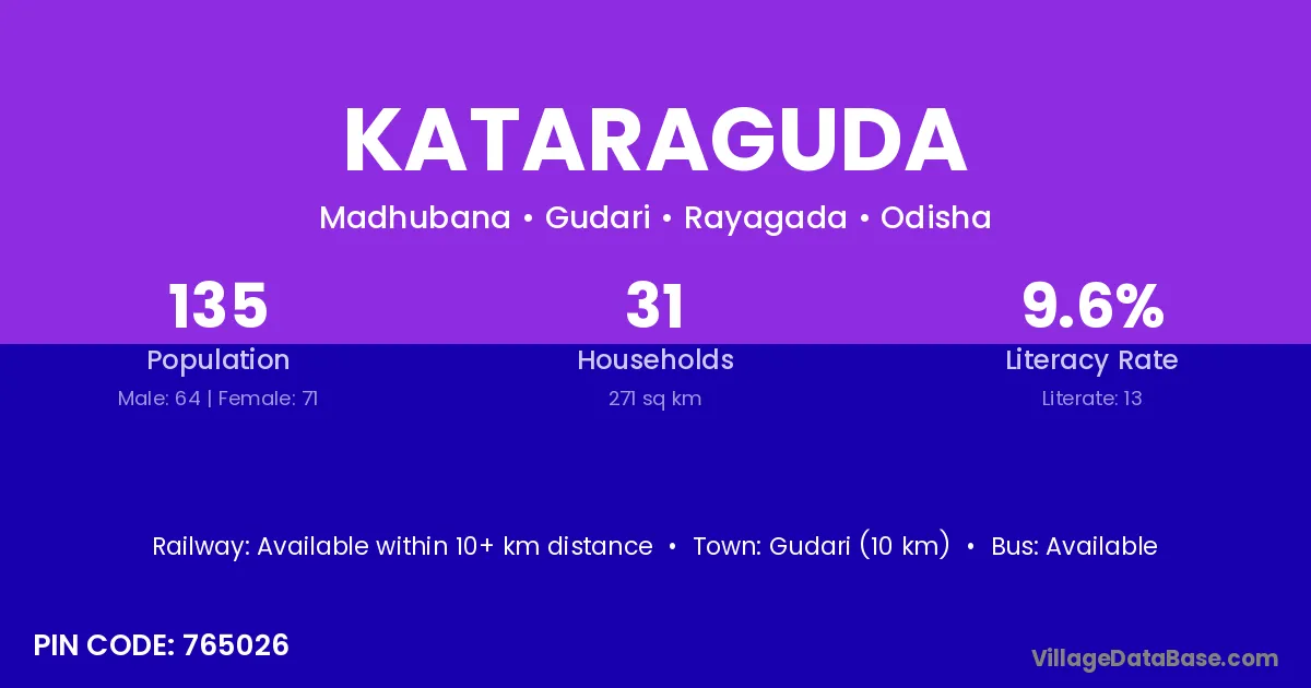 Kataraguda village has a total population of 135 people, of which 64 are males and 71 are females.