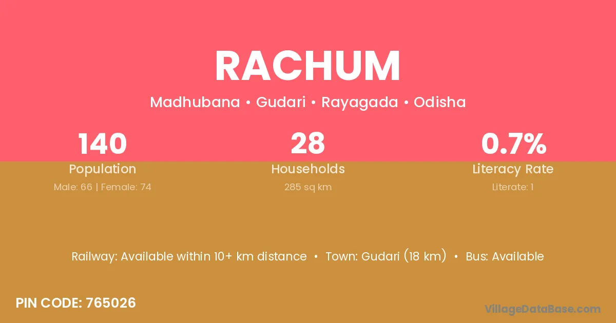 Rachum village is located in the Gudari Tehsil of the Rayagada district in Odisha .
