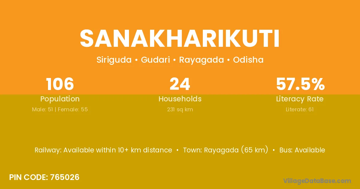Sanakharikuti village has a total population of 106 people, of which 51 are males and 55 are females.