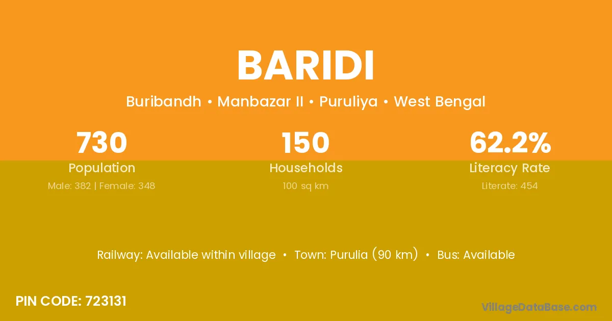 Gunupur (21 km) is the nearest town to Baridi village for major economic activities and is located approximately 21 km away.