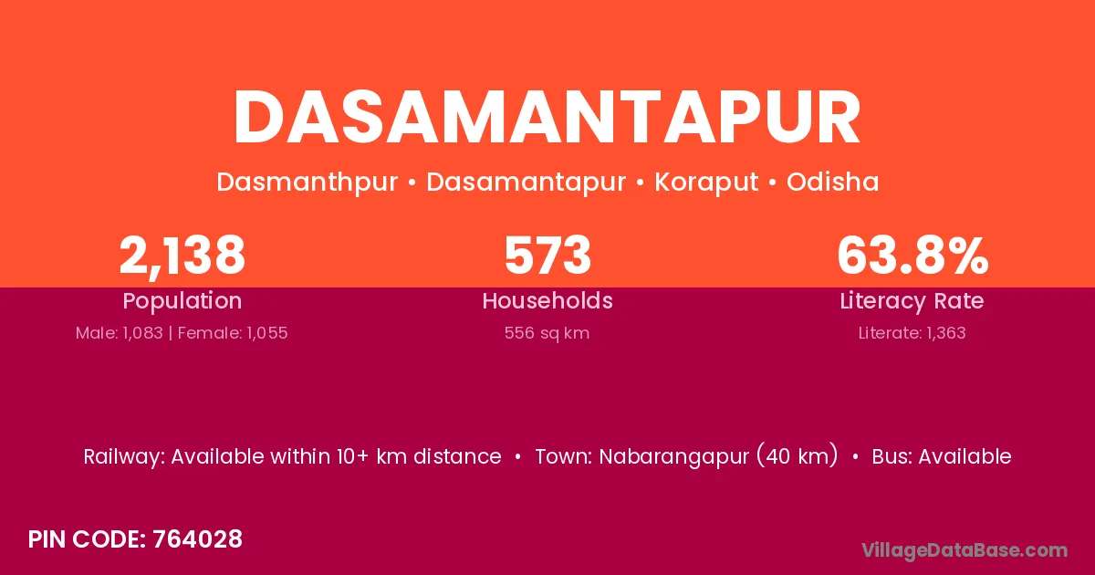 Gunupur (8 km) is the nearest town to Dasamantapur village for major economic activities and is located approximately 8 km away.