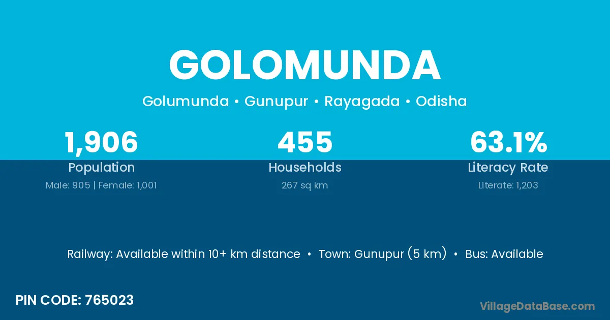 Gunupur (5 km) is the nearest town to Golomunda village for major economic activities and is located approximately 5 km away.