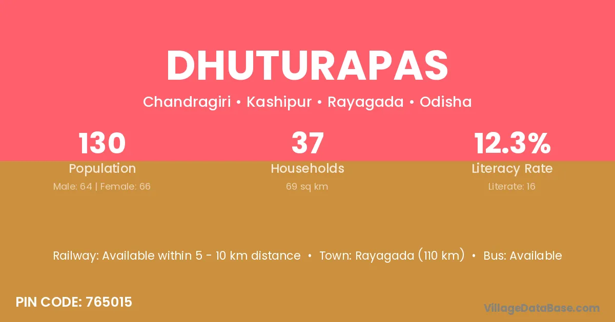 Dhuturapas village has a total population of 130 people, of which 64 are males and 66 are females.
