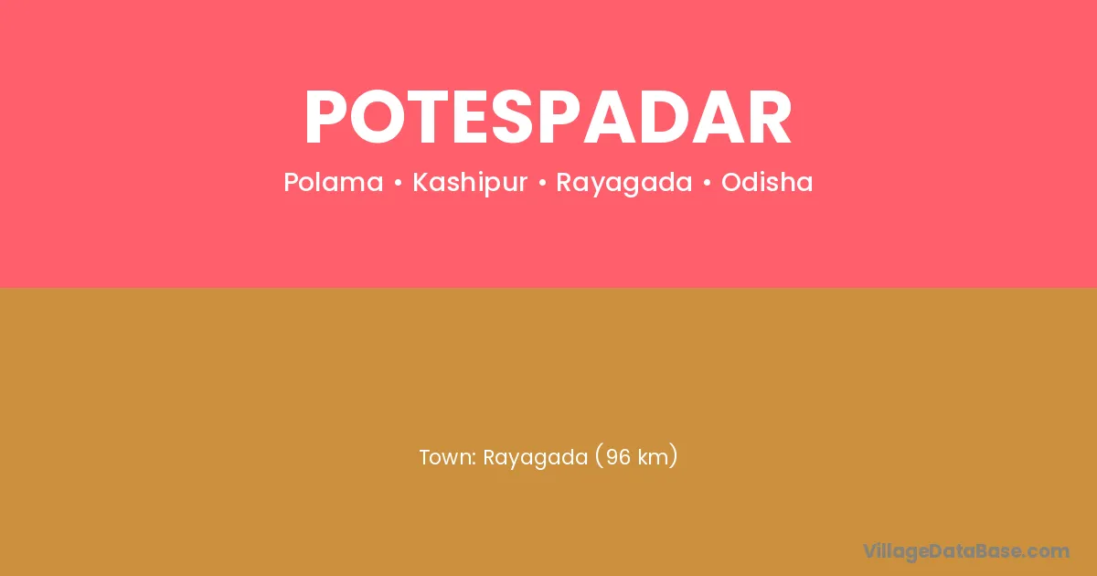 Potespadar village is located in the Kashipur Tehsil of the Rayagada district in Odisha .
