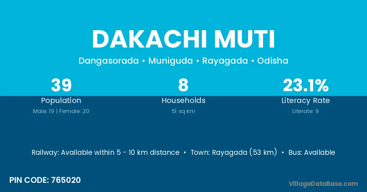 Dakachi Muti village is located in the Muniguda Tehsil of the Rayagada district in Odisha .