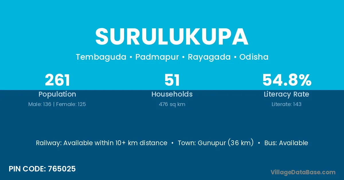 Surulukupa village is located in the Padmapur Tehsil of the Rayagada district in Odisha .