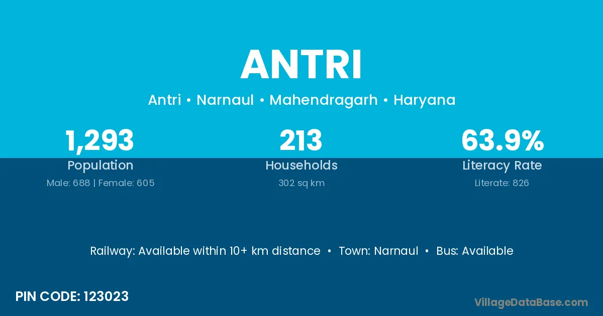 Antri village has a total population of 123 people, of which 59 are males and 64 are females.