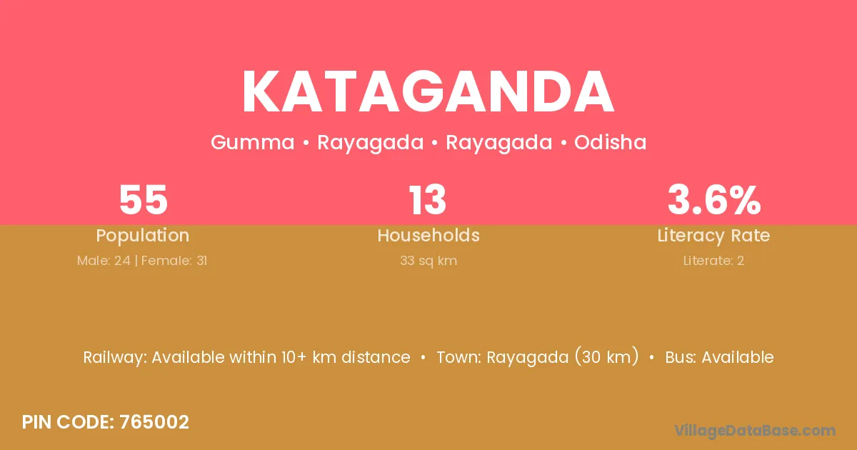 Rayagada (30 km) is the nearest town to Kataganda village for major economic activities and is located approximately 30 km away.