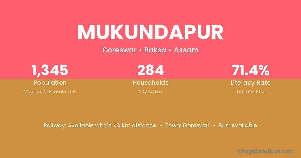 Rayagada (30 km) is the nearest town to Mukundapur village for major economic activities and is located approximately 30 km away.