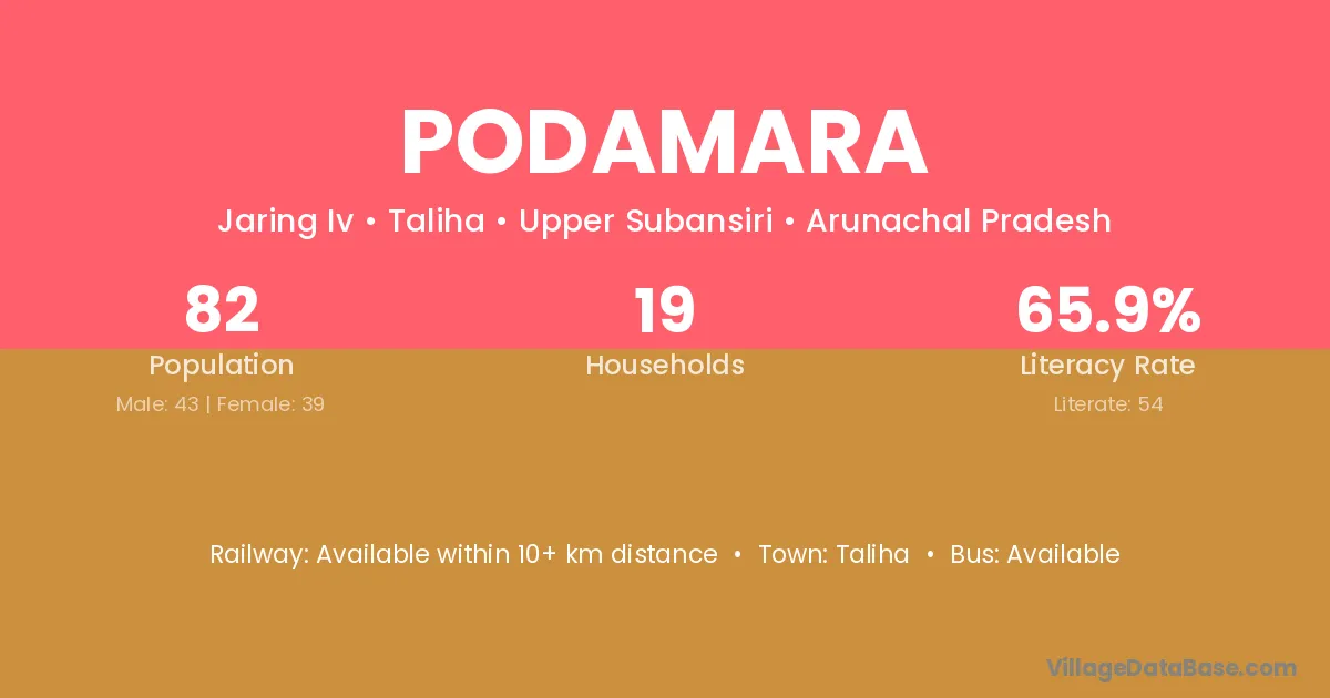Rayagada (26 km) is the nearest town to Podamara village for major economic activities and is located approximately 26 km away.