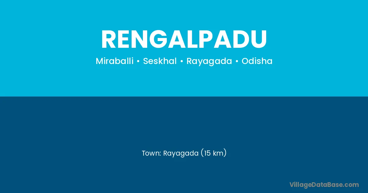 Rayagada (19 km) is the nearest town to Rengalpadu village for major economic activities and is located approximately 19 km away.