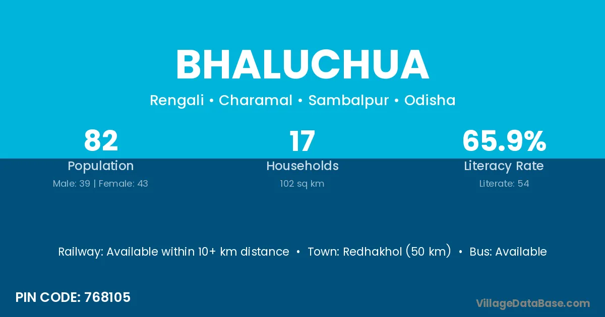 Redhakhol (50 km) is the nearest town to Bhaluchua village for major economic activities and is located approximately 50 km away.