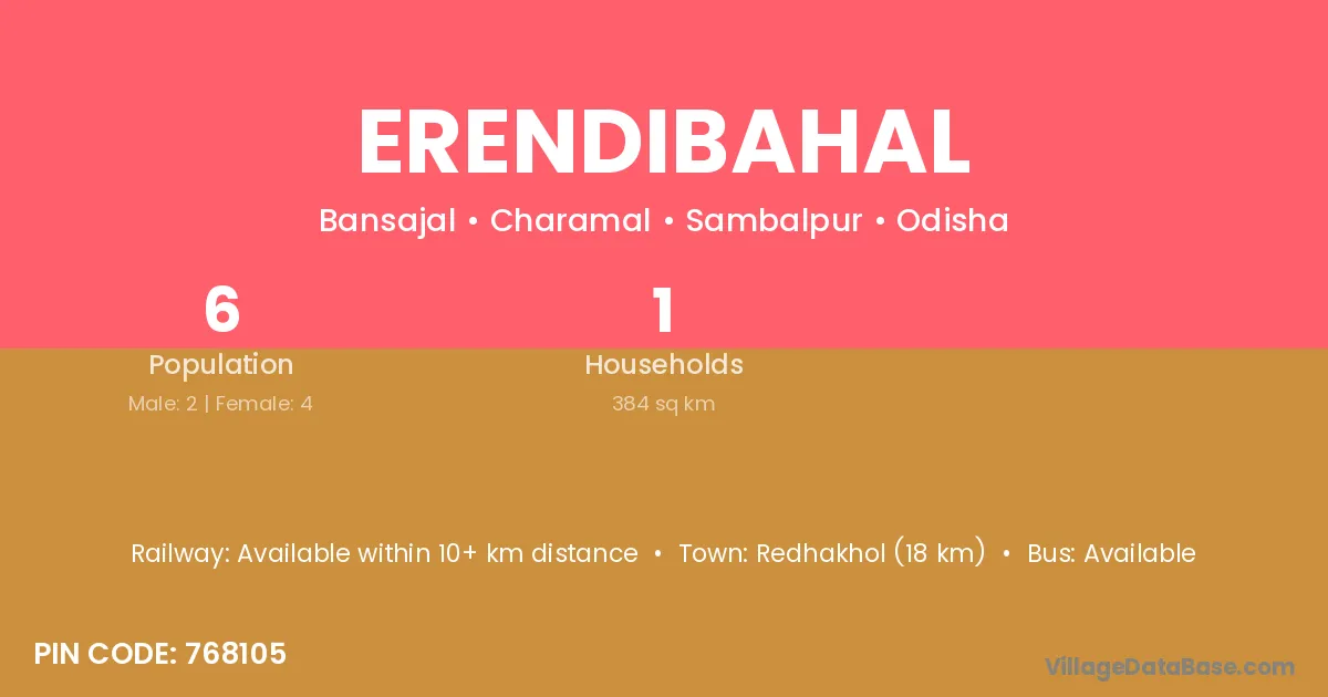 Redhakhol (18 km) is the nearest town to Erendibahal village for major economic activities and is located approximately 18 km away.
