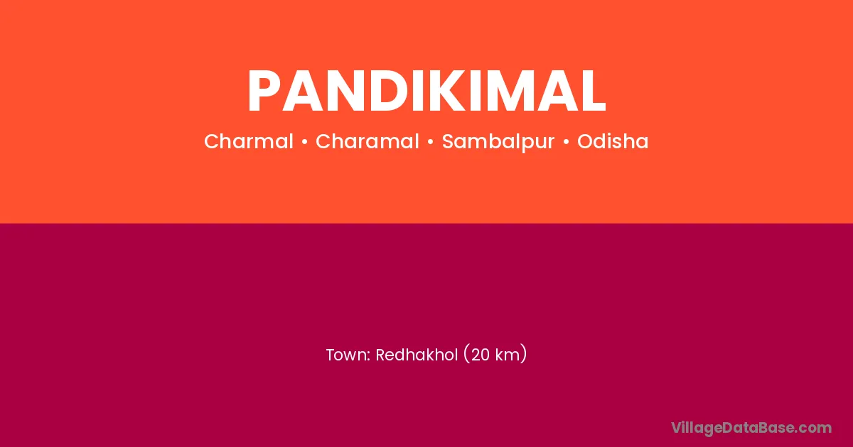 Pandikimal village is located in the Charamal Tehsil of the Sambalpur district in Odisha .