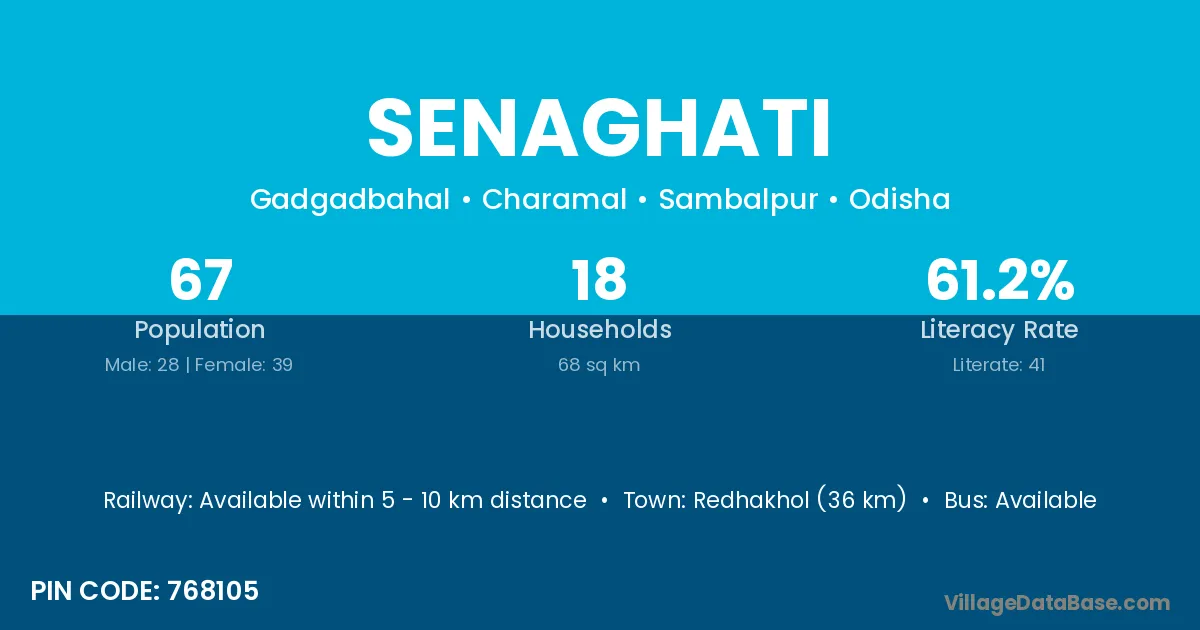 Redhakhol (36 km) is the nearest town to Senaghati village for major economic activities and is located approximately 36 km away.