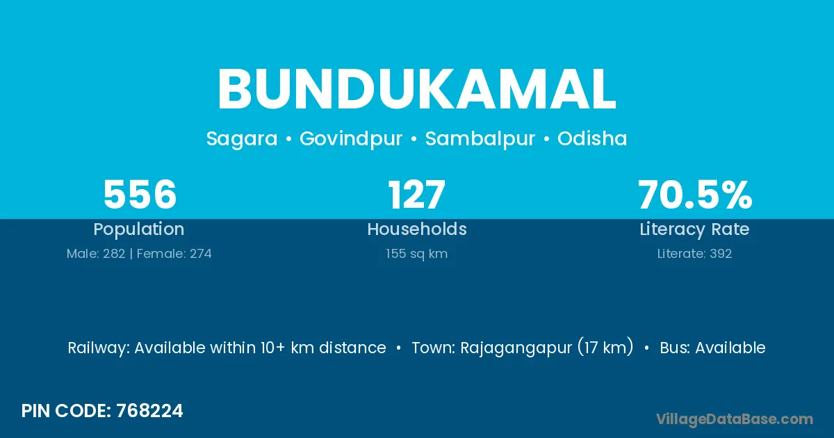 Rajagangapur (17 km) is the nearest town to Bundukamal village for major economic activities and is located approximately 17 km away.