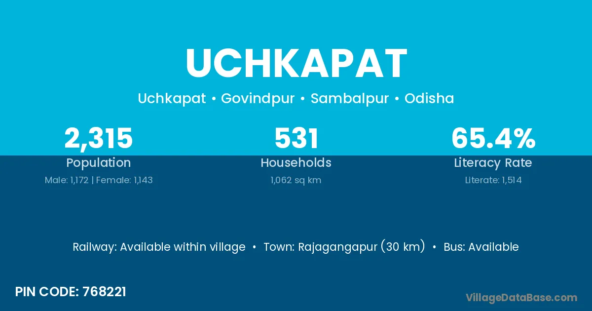 Rajagangapur (30 km) is the nearest town to Uchkapat village for major economic activities and is located approximately 30 km away.