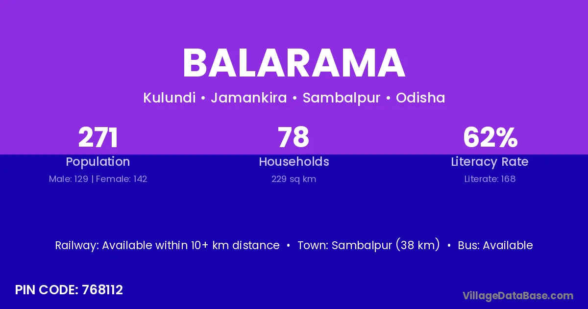 Sambalpur (38 km) is the nearest town to Balarama village for major economic activities and is located approximately 38 km away.