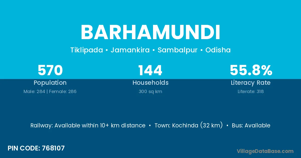 Kochinda (32 km) is the nearest town to Barhamundi village for major economic activities and is located approximately 32 km away.
