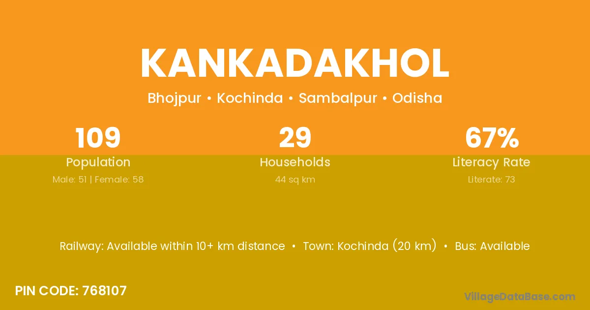 Kochinda (26 km) is the nearest town to Kankadakhol village for major economic activities and is located approximately 26 km away.