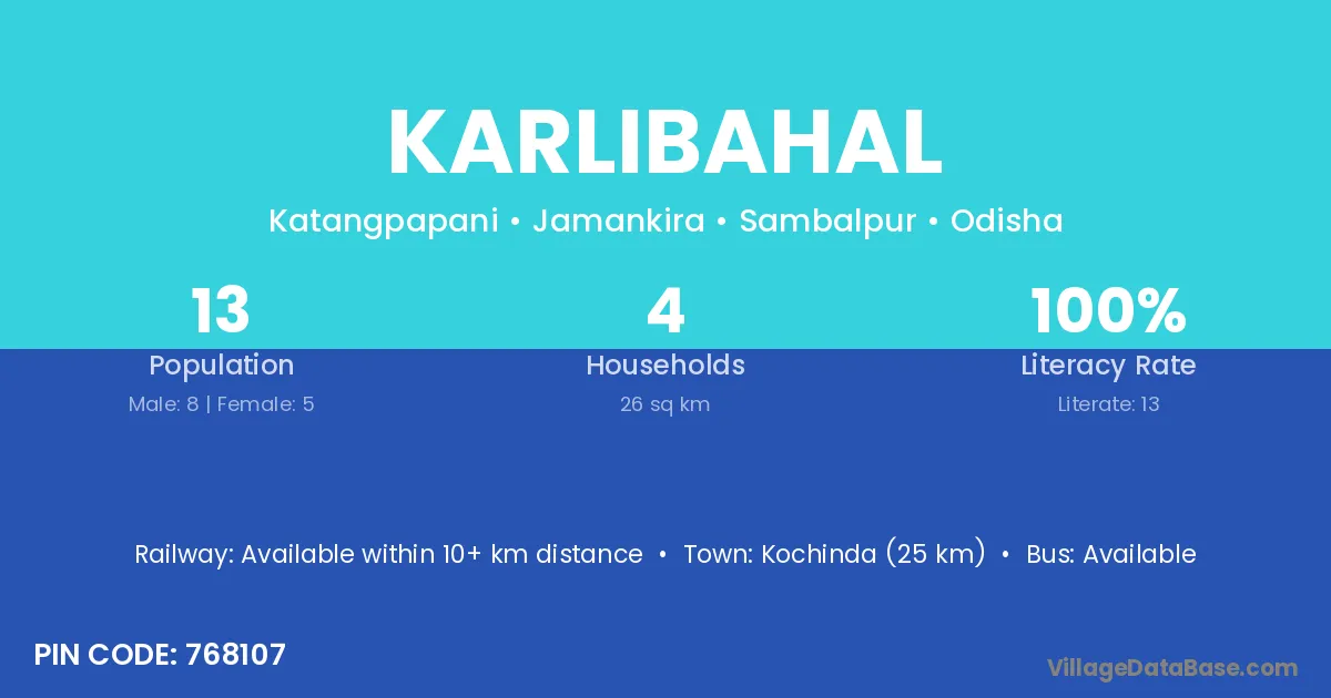 Karlibahal village has a total population of 13 people, of which 8 are males and 5 are females.