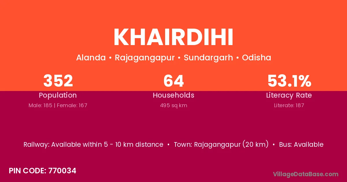 Khairdihi village has a total population of 250 people, of which 127 are males and 123 are females.