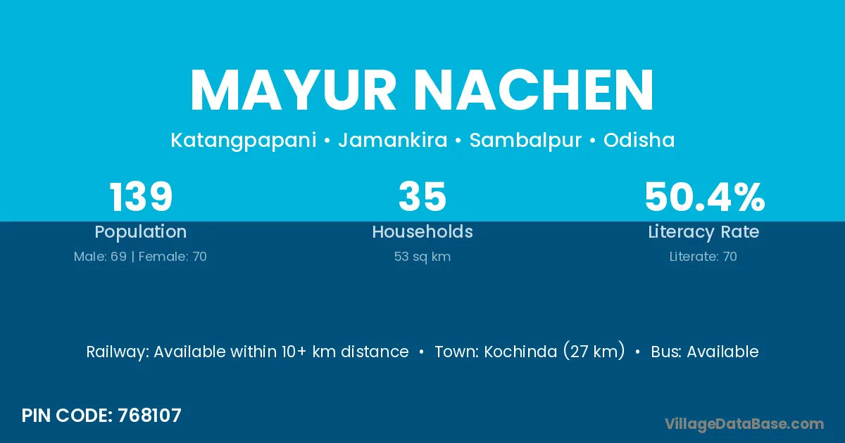 Kochinda (27 km) is the nearest town to Mayur Nachen village for major economic activities and is located approximately 27 km away.