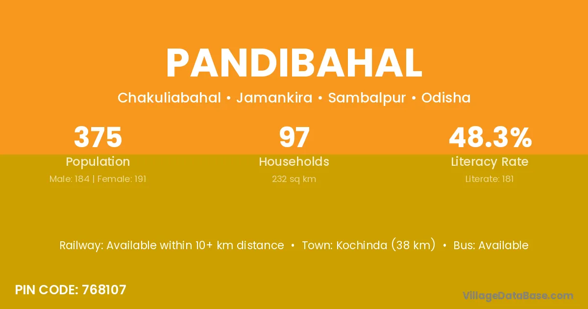 Pandibahal village has a total population of 375 people, of which 184 are males and 191 are females.