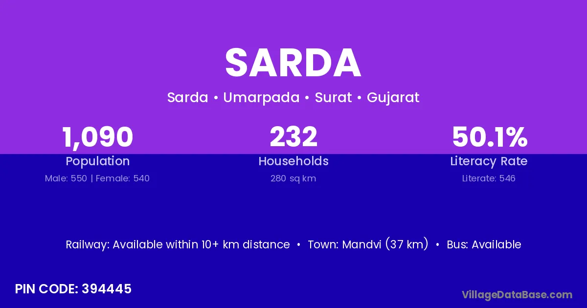 According to Census 2011 information, the village code of Sarda village is 768107.