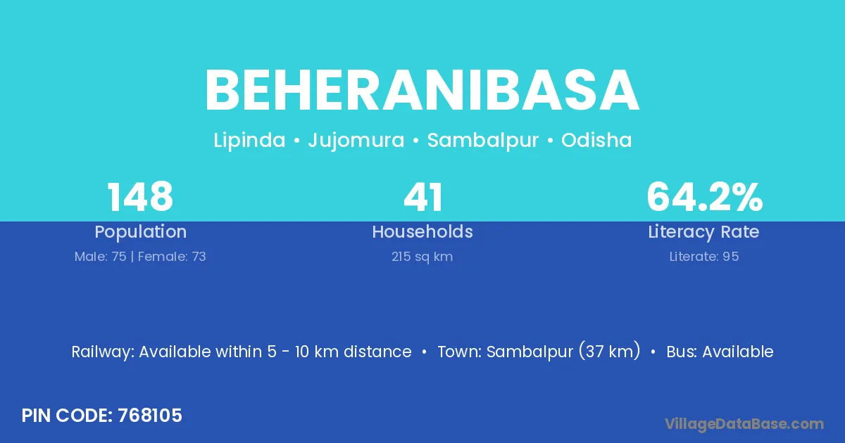 Sambalpur (37 km) is the nearest town to Beheranibasa village for major economic activities and is located approximately 37 km away.
