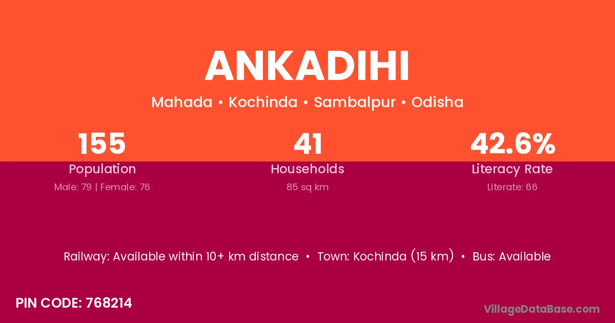 Ankadihi village has a total population of 155 people, of which 79 are males and 76 are females.