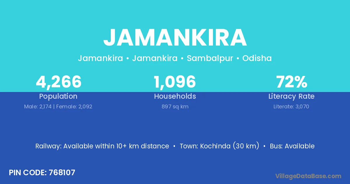 Kochinda (5 km) is the nearest town to Jamankira village for major economic activities and is located approximately 5 km away.