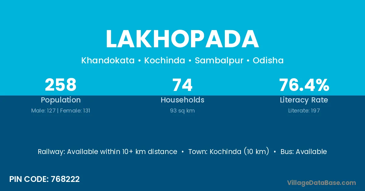 According to Census 2011 information, the village code of Lakhopada village is 768222.