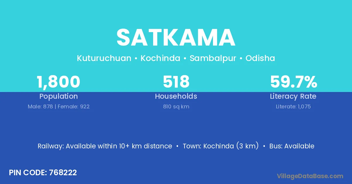 Kochinda (3 km) is the nearest town to Satkama village for major economic activities and is located approximately 3 km away.