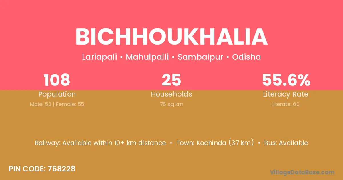 Kochinda (37 km) is the nearest town to Bichhoukhalia village for major economic activities and is located approximately 37 km away.