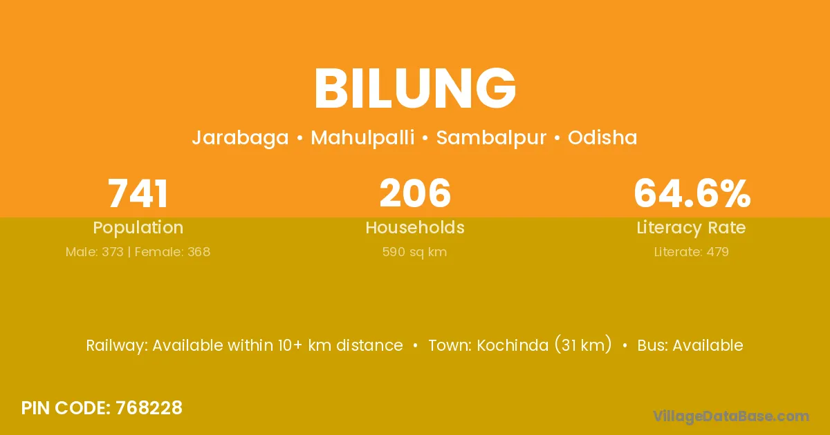 Bilung village has a total population of 741 people, of which 373 are males and 368 are females.