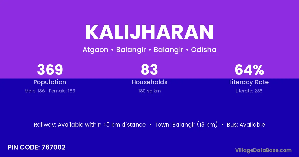 Kochinda (19 km) is the nearest town to Kalijharan village for major economic activities and is located approximately 19 km away.