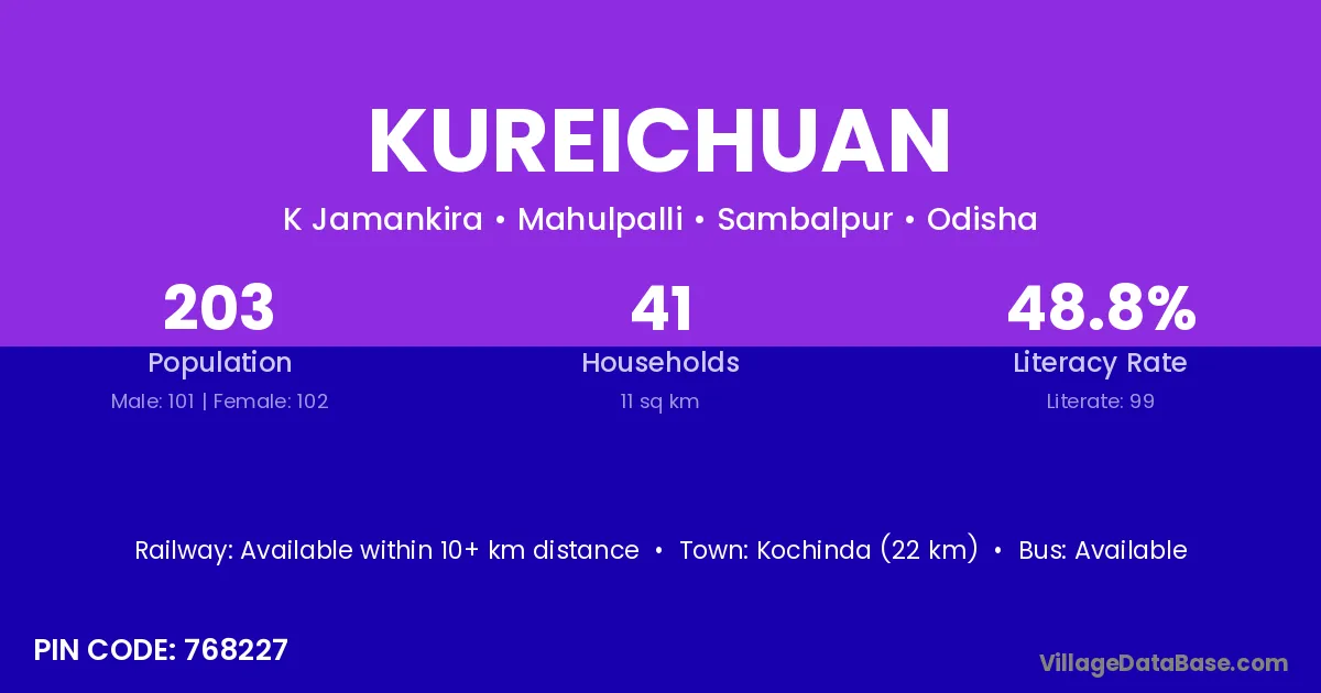 Kureichuan village has a total population of 203 people, of which 101 are males and 102 are females.