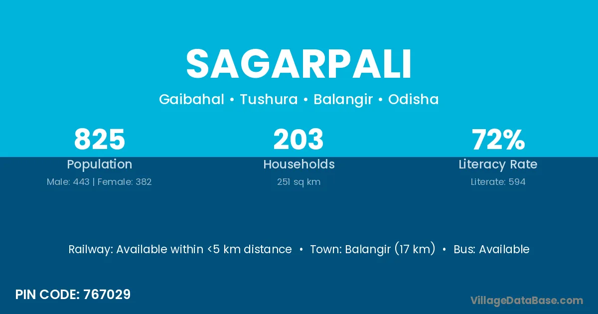 Kochinda (38 km) is the nearest town to Sagarpali village for major economic activities and is located approximately 38 km away.