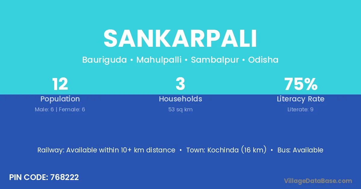 Sankarpali village has a total population of 12 people, of which 6 are males and 6 are females.