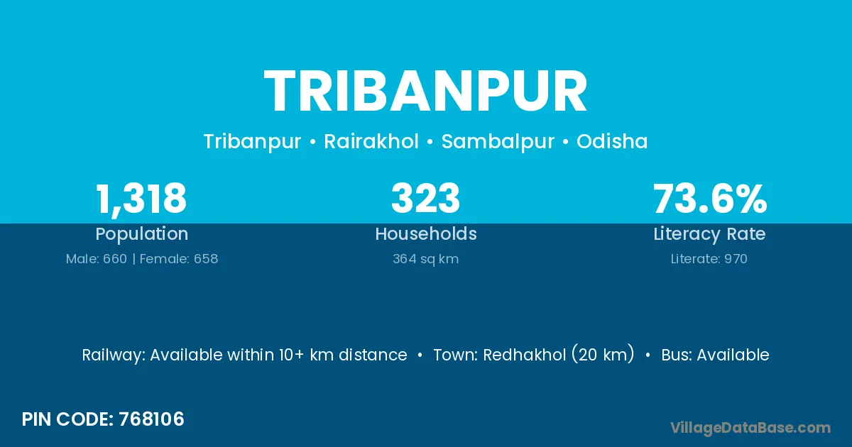 Redhakhol (20 km) is the nearest town to Tribanpur village for major economic activities and is located approximately 20 km away.